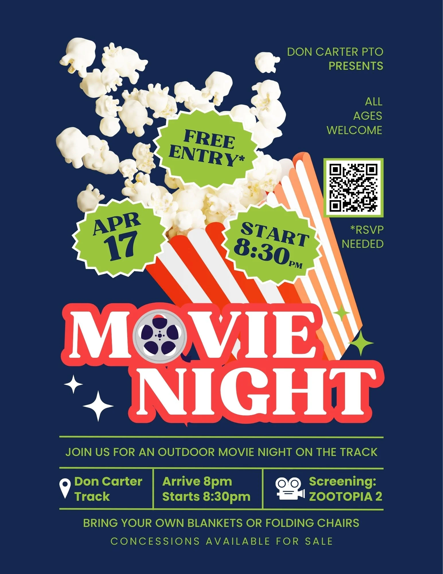 Join us for our first outdoor movie night on the Carter track and grass area behind the school!